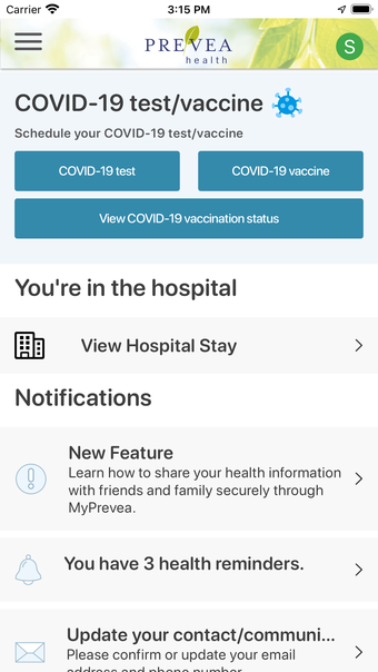 The main screen of the MyPrevea App provides up-to-date and useful information about Prevea Health. From here, users can quickly access their MyPrevea account to view confidential health information, including lab and test results, as soon as they become available. Users can also access a list of their medications and immunization records, stay in touch with their doctor and other providers, request and track prescription refills, manage their Prevea appointments, view and pay their bill, and even access health information for their spouse, children, or elderly relative with proper consent.